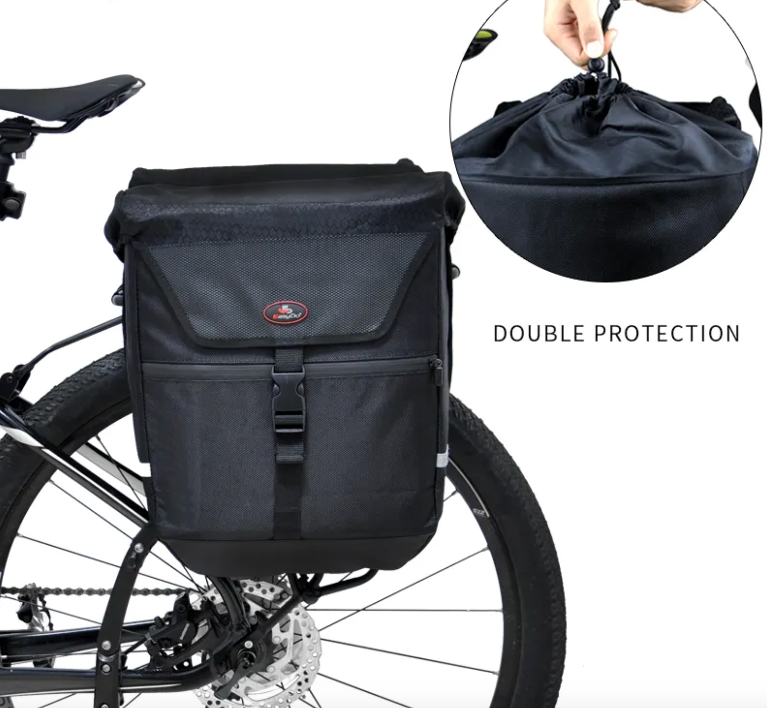 Cone-shape bag bottom and elastic binding rope design make bag well fit with bike.