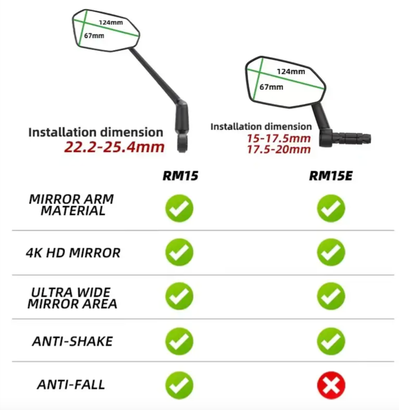 Size of mirror face: height 124*67mm